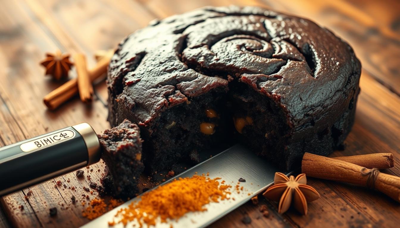 Jamaican Black Cake is more than a dessert; it’s a symbol of heritage and community. It’s made with dried fruits soaked in rum and wine. These ingredients blend into a rich, spiced batter, giving it a unique flavor and texture.
